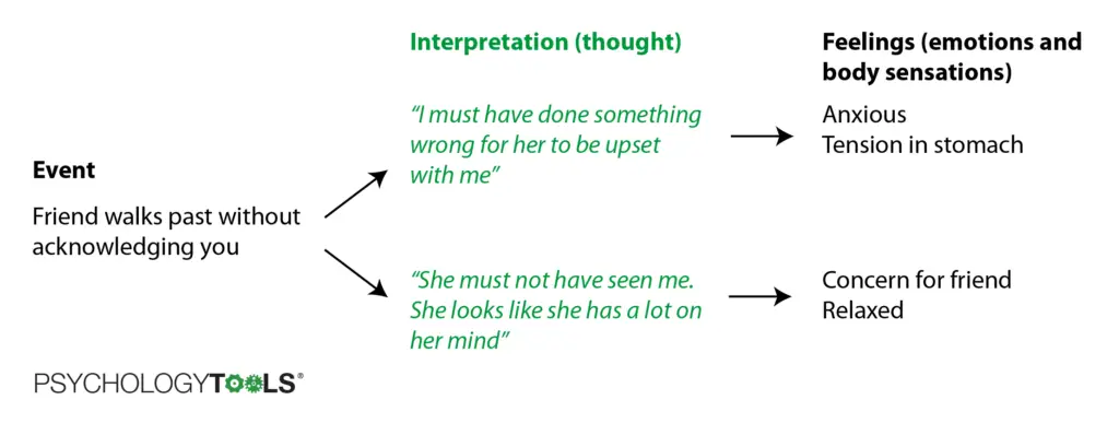 CBT theory suggests that our thoughts, emotions, body sensations, and behaviour are all connected, and that what we think and do affects the way we feel.